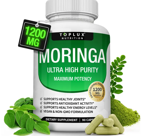 Cápsulas de Moringa 1200mg-Polvo de Moringa Puro para Inmune, Salud Intestinal 90 Cápsulas